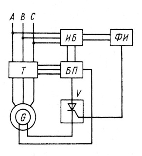 Все рассмотренные выше схемы генераторов предполагают ручное регулирование напряжения, которое не может обеспечить надлежащего и своевременного контроля за изменением нагрузки. Современные синхронные генераторы оборудованы автоматическими устройствами, которые не только регулируют напряжение на зажимах генераторов, но и при необходимости увеличивают возбуждение до максимального значения в момент снижения напряжения (например, при аварийных режимах). Такие устройства называютавтоматическими регуляторами возбуждения (АРВ).