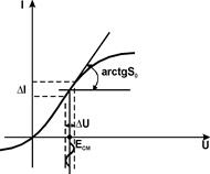 то можно линеаризовать зависимость i0(t)-I(ECM)=a1ΔU=S0ΔU, где S0 — начальная крутизна, равная тангенсу угла наклона касательной к графику I(U) в точке U=EСМ.
